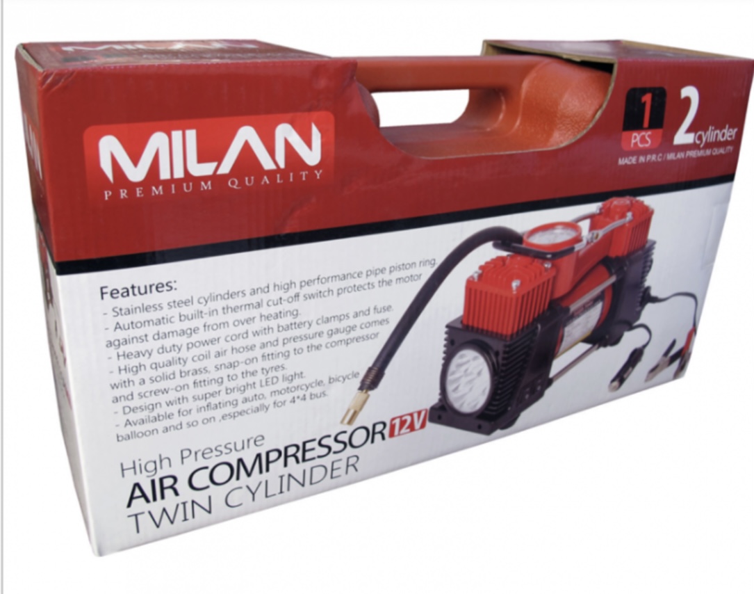 توان 300 وات حداکثر فشار 150. فناوری کمپرسور دو سیلندر ولتاژ 12 ولت فندکی قابلیت اتصال به فندکی خودرو به همراه یک تبدیل جهت اتصال مستقیم به سر باطری دارای شلنگ فنری اضافه و سوزن جهت باد کردن توپ